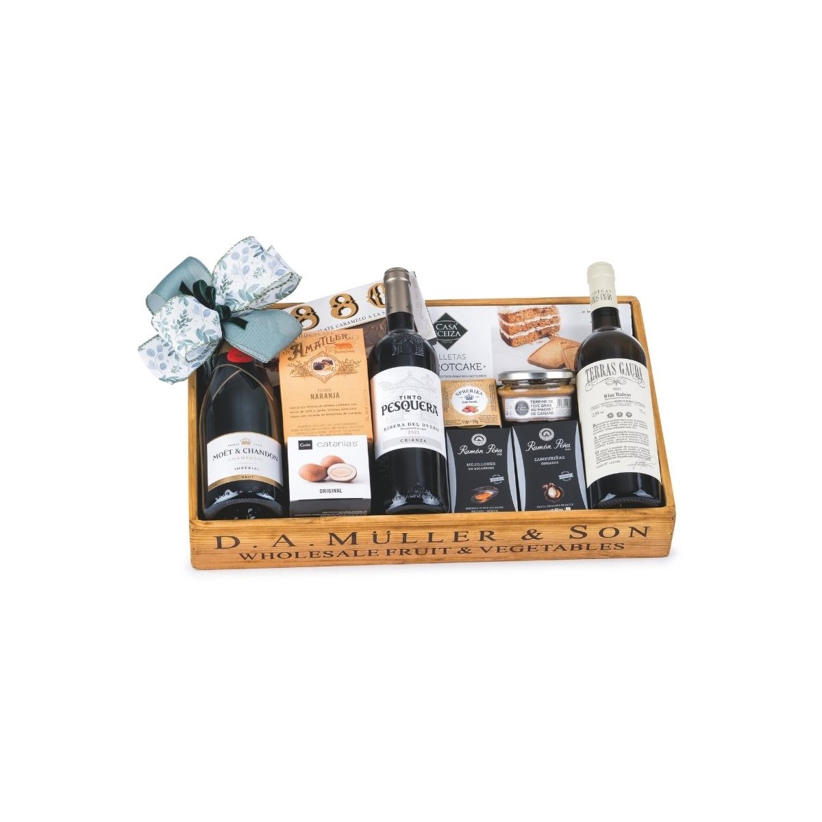 Este Regalo de Navidad Original destaca por sus fantásticas opciones de bodega, Champagne francés y Pesquera de Ribera del Duero, es una opción sofisticada que muestra el aprecio por la calidad. Este regalo de navidad original ha sido cuidadosamente confeccionado para ofrecer una experiencia memorable, desde la primera vista hasta el último sorbo y bocado. Ideal para aquellos que desean regalar algo más que un simple detalle, ¡un regalazo!