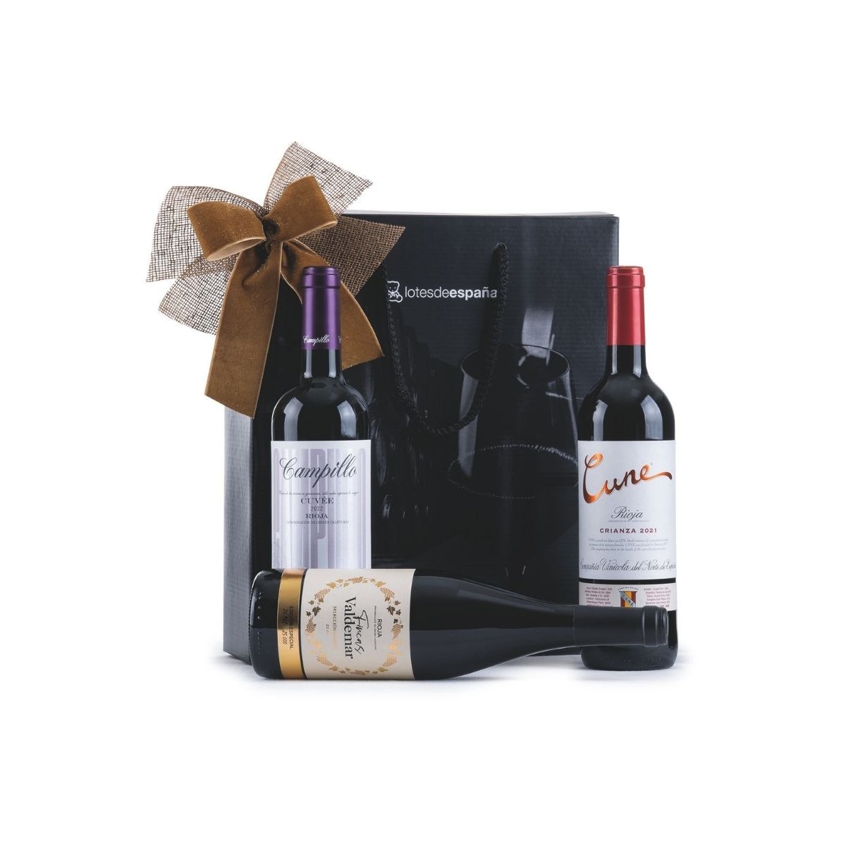 Un gran detalle de Navidad compuesto por tres botellas de vino tinto D.O. Rioja, presentado en una elegante caja. El vino es protagonista de todas las celebraciones en Navidad.