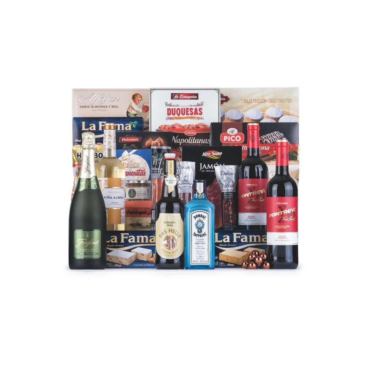 Nuestro Lote de Navidad Surtido está diseñado para quienes saben apreciar lo mejor en calidad. Cada elemento ha sido seleccionado cuidadosamente para garantizar que se satisfacen los gustos de los más exigentes. Un lote de navidad surtido que combina tradición y modernidad, ofreciendo productos que son tan deliciosos como vistosos: turrones, cava, ginebra, jamón loncheado, ¡para no levantarse de la mesa!