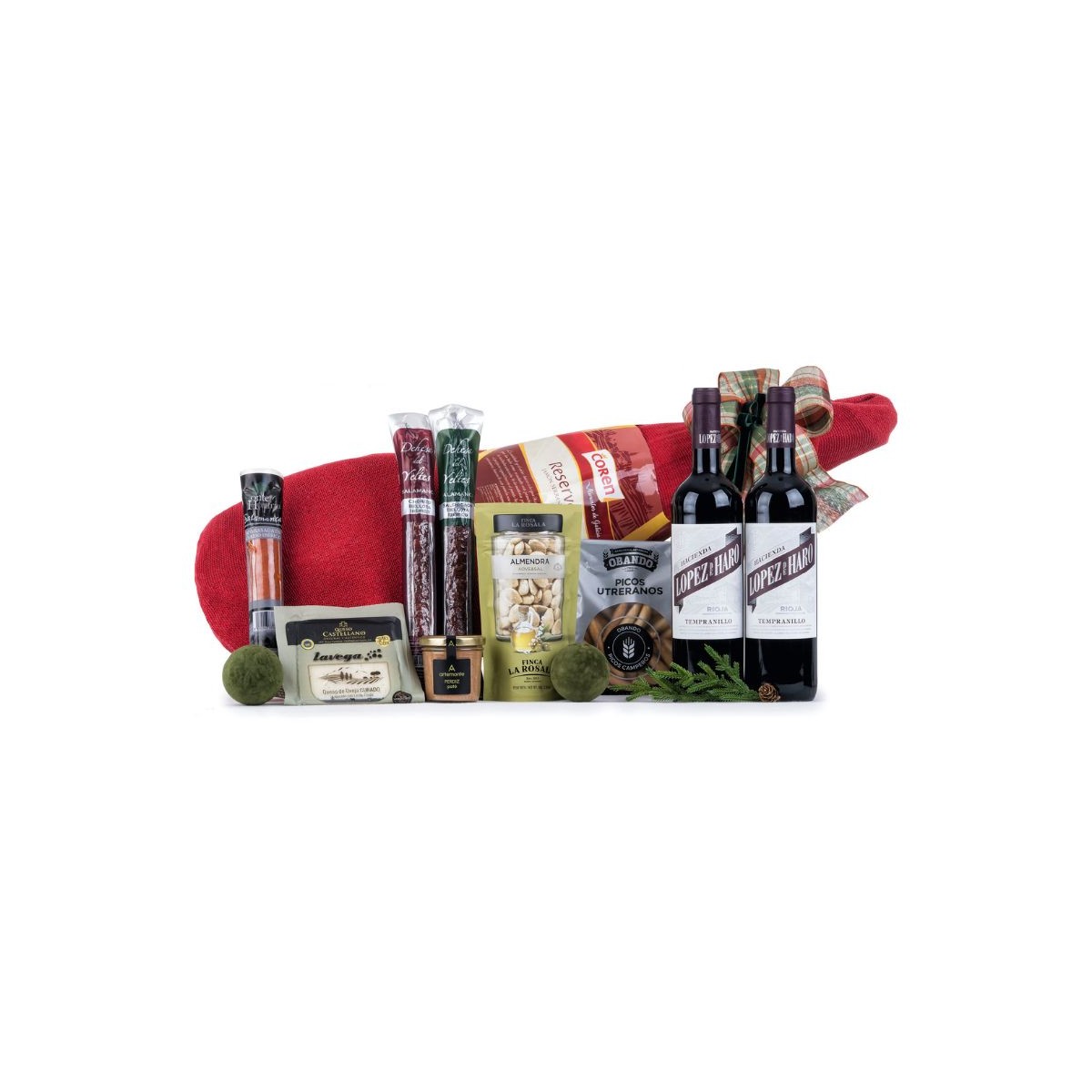 Nuestra Cesta de Navidad con Jamón Serrano Reserva Gallego Coren es un regalo de Navidad imprescindible en cualquier celebración. Este jamón, de calidad superior, viene acompañado de embutidos ibéricos, queso de oveja, paté, picos y dos botellas de vino D.O. Rioja, creando una combinación perfecta.